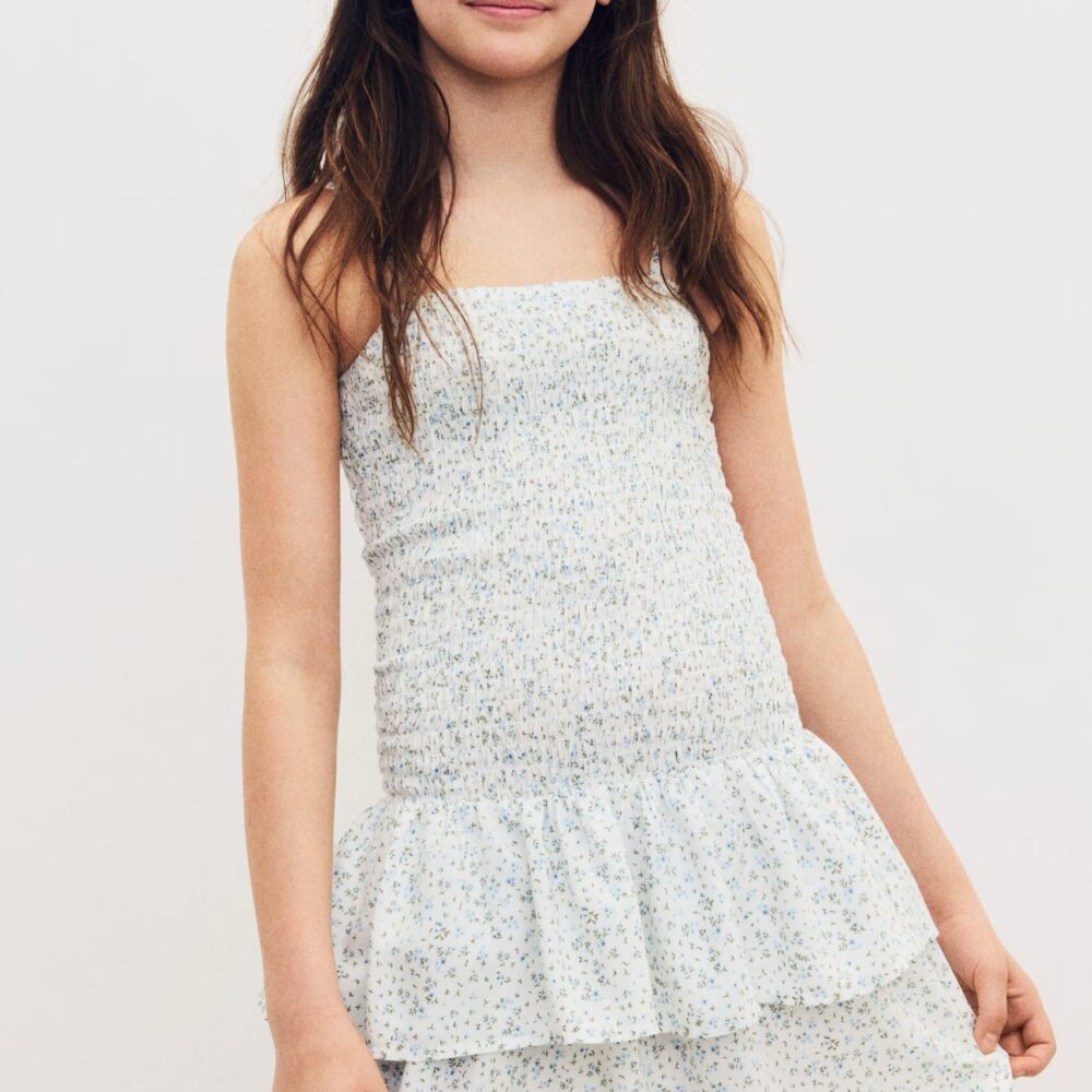 Découvrez cette robe smockée à bretelles fines conçue dans une démarche écoresponsable. Cette robe smockée est idéale pour un look estival léger et confortable.